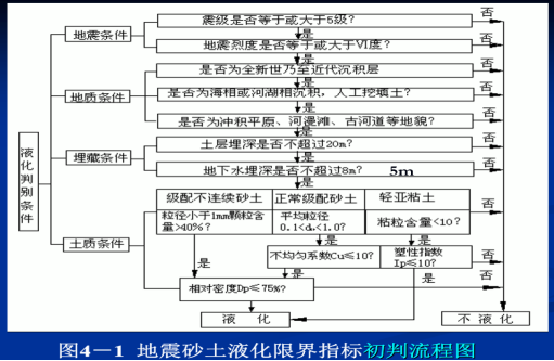 松散易液化,密实土不易液化。相对密度Dr<50%,易液化,Dr>80%,不易液化